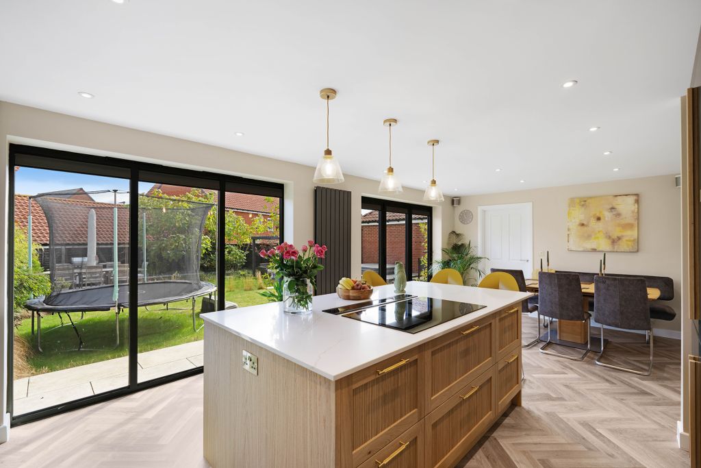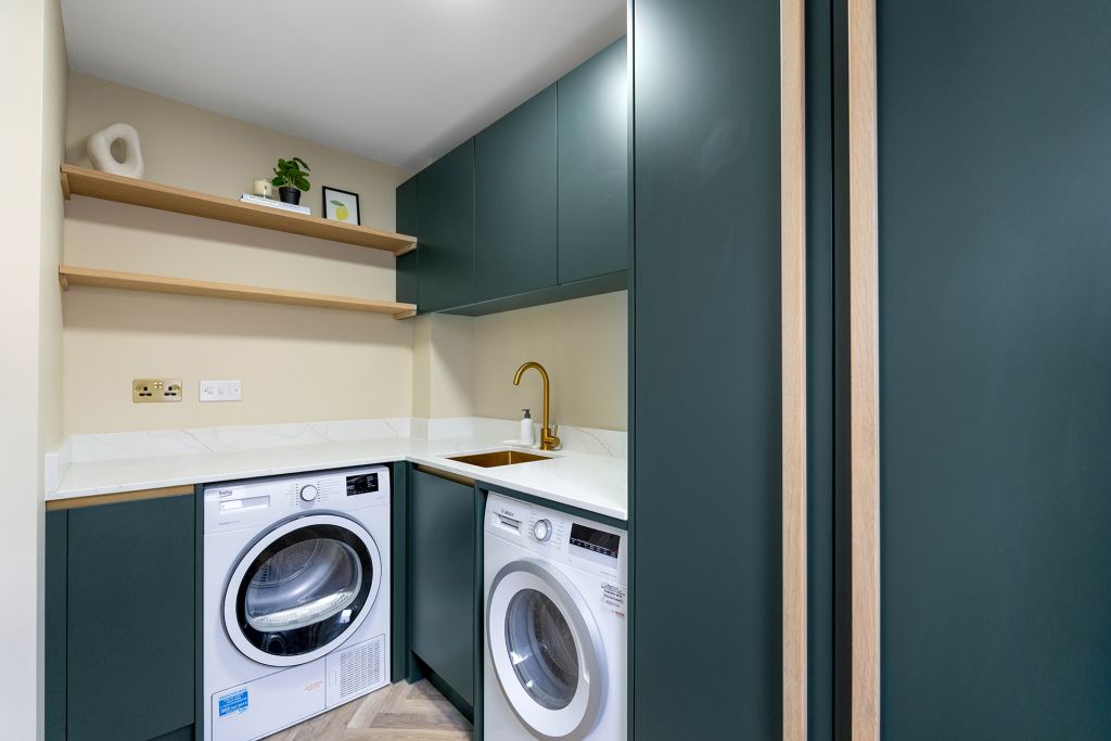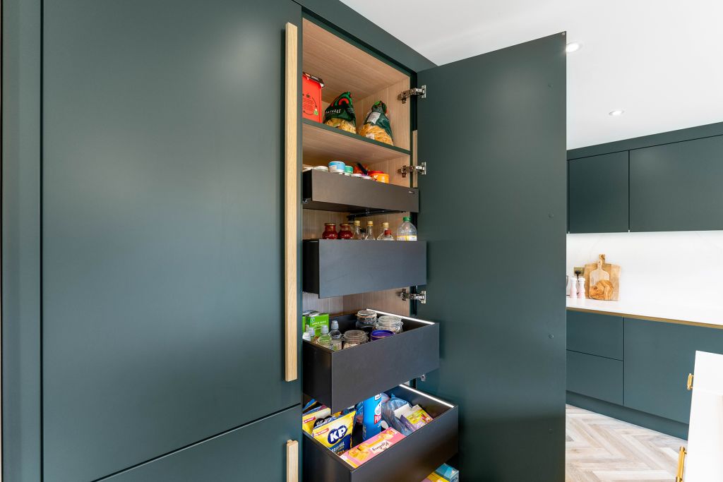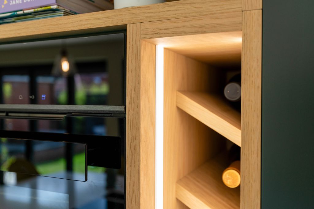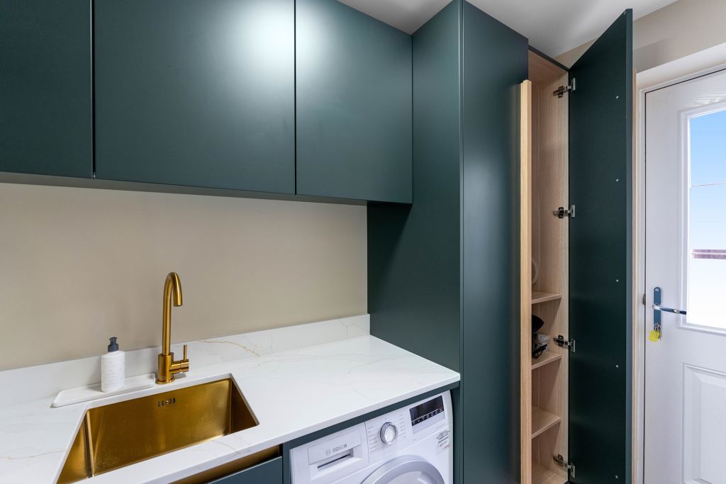 To create cohesion, accents of chalked oak are echoed throughout the space, seamlessly tying the two elements together and adding warmth and character to the room. The look is completed with Siemens IQ700 appliances and a gold Quooker tap, bringing together performance and style in a truly show-stopping kitchen.