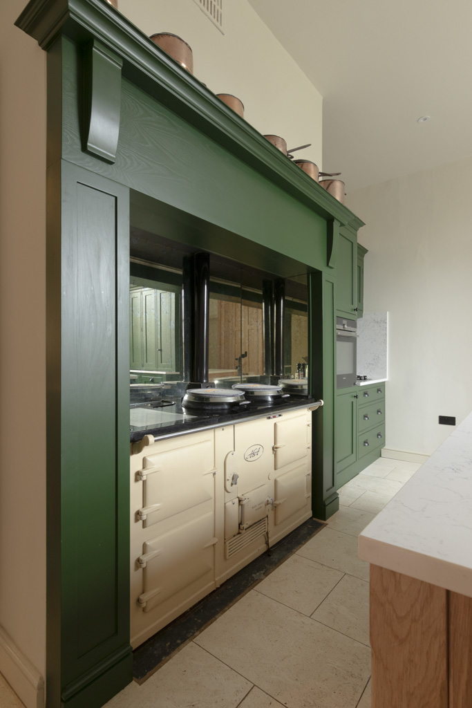 Using the existing footprint, we optimised storage space and accessibility by incorporating drawer front cabinetry throughout. Attention was paid to the layout, with the oven and hob moved to the same side of the room as the Aga to achieve a more cohesive and ergonomic design.